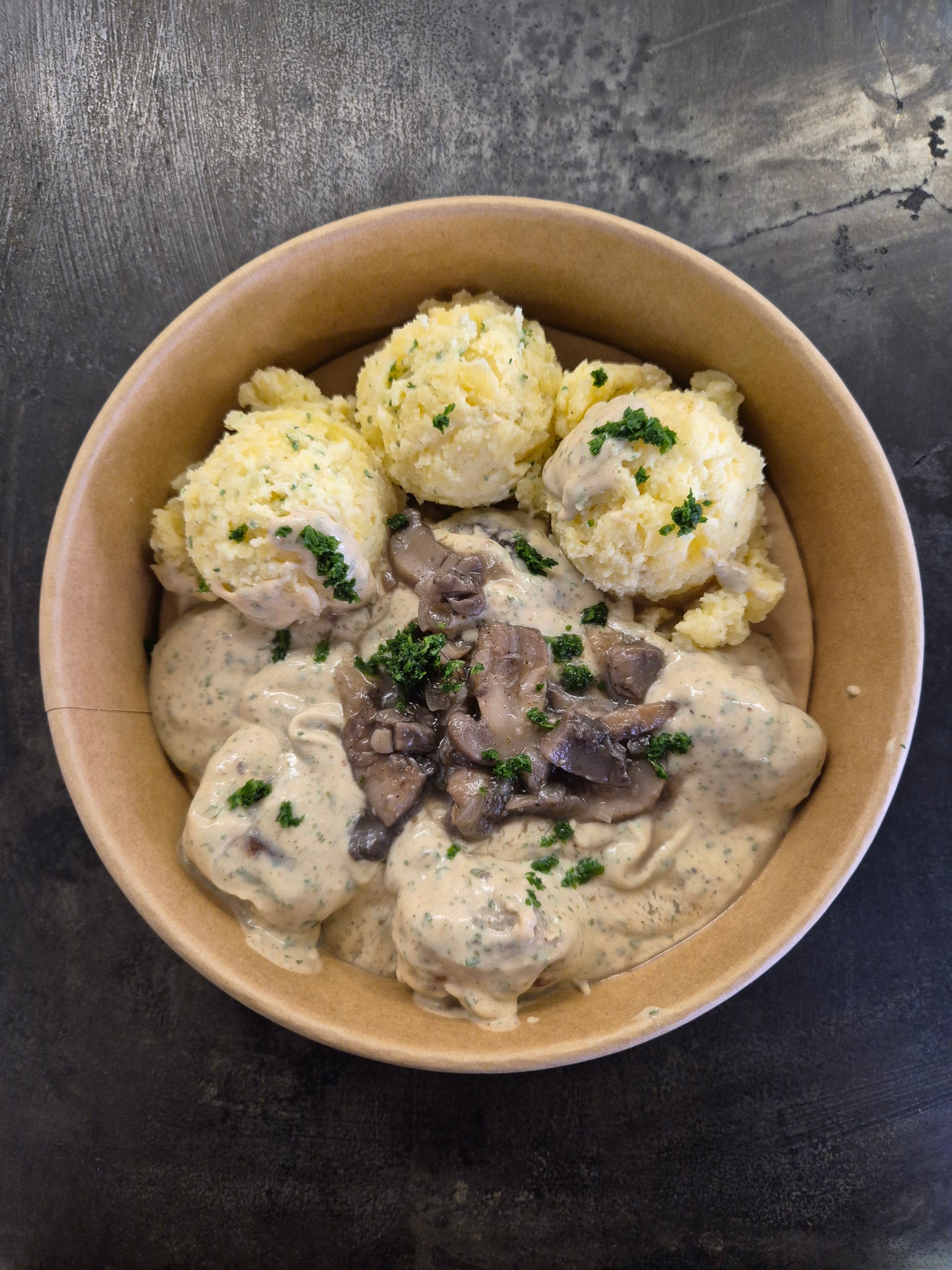 Boulettes suédoises, purée au persil, poireaux